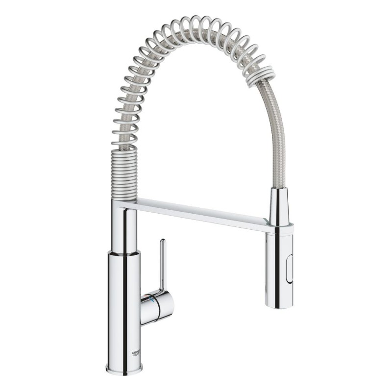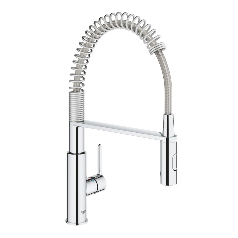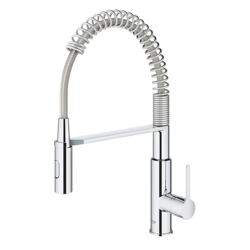 Привнесіть професійну продуктивність на свою кухню за допомогою одноважільного кухонного змішувача GROHE Get. Вилив кухонного змішувача плавно повертається на 360 градусів для повного комфорту та зручності, а лійка Professional Spray, з пружиною для максимальної мобільності, дозволяє легко перемикатися між потужним струменем і дрібним струменем, що відмінно підходить для вирішення цілого ряду кухонних завдань – обидві функції роблять цей змішувач відмінним вибором для мийки із двома чашами.