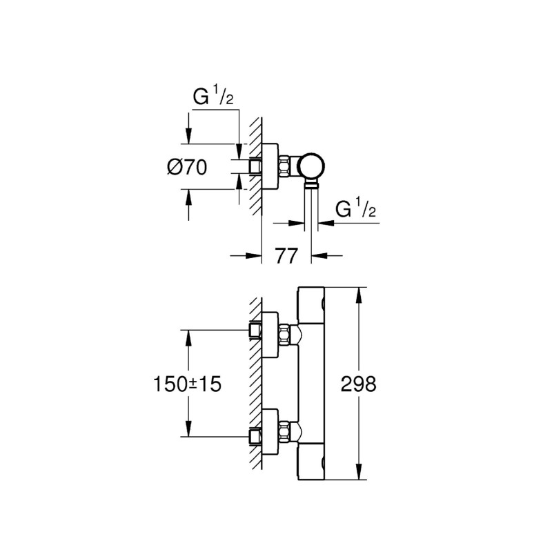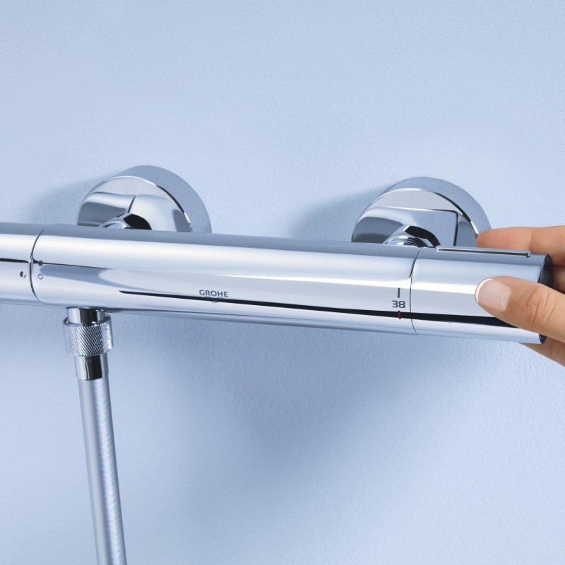Цей елегантний і компактний термостат поставляється з ергономічними металевими ручками, які легко захоплювати і повертати. Виконаний в глянсовому хромовом покритті GROHE Long-Life Shine®, термостат має велику візуальну і тактильну привабливість