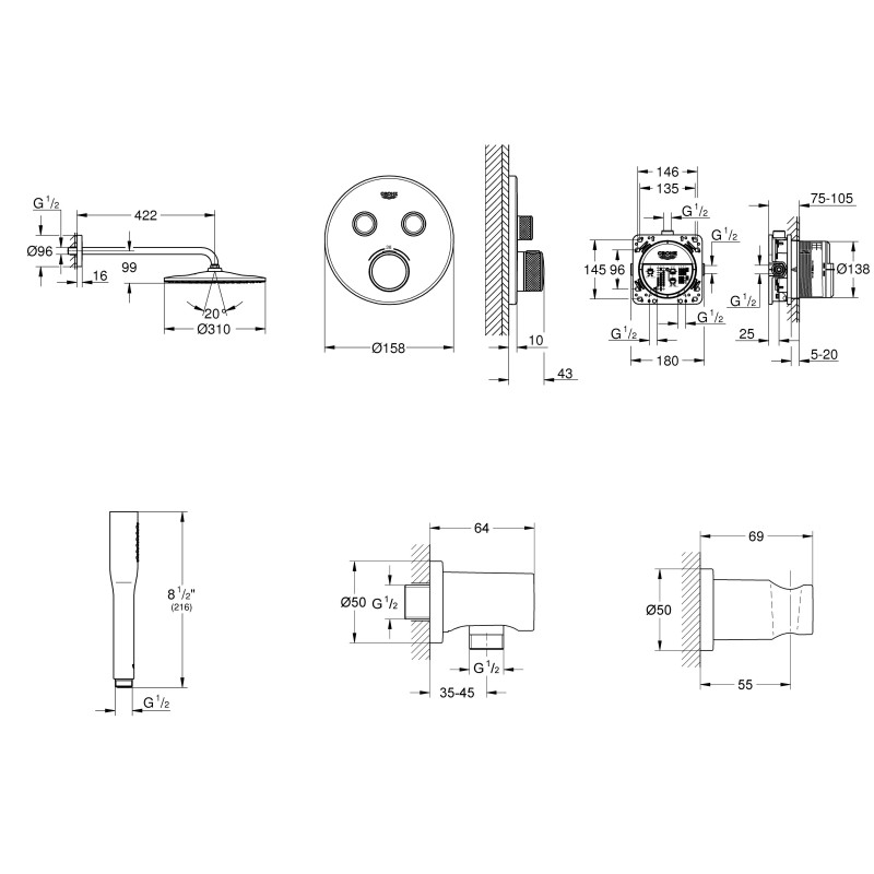 вбудованої частини GROHE Rapido SmartBox 35 600/35 604