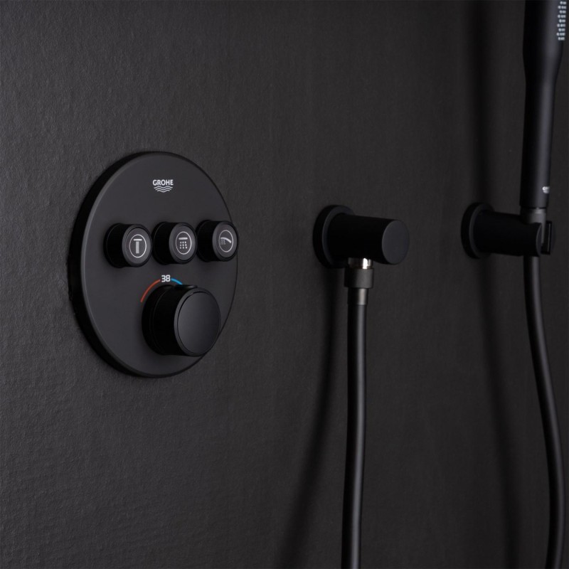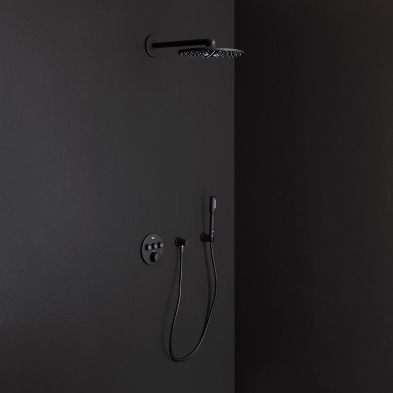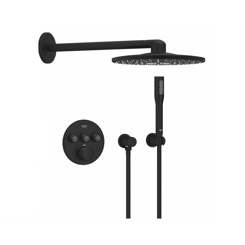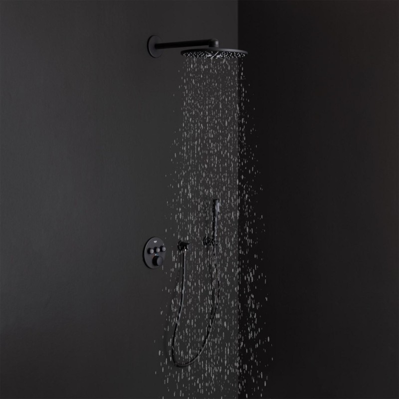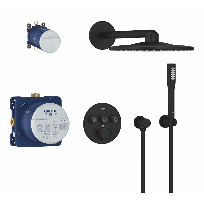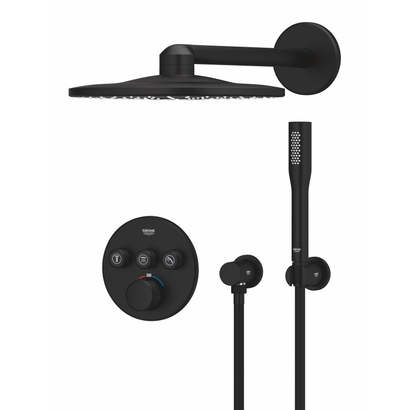 Душовий набір GROHE Grohtherm SmartControl включає в себе всі елементи, необхідні для поновлення вашого душа. У набір входять: термостат вбудованого монтажу Grohtherm SmartControl, круглий верхній душ Rainshower 310 SmartActive (включаючи душовий кронштейн довжиною 400 мм, вбудований механізм) з двома режимами струменя, ручний душ Euphoria Cosmopolitan Stick з тримачем, душовий шланг Silverflex з функцією анти-скручування і універсальний вбудований механізм GROHE Rapido SmartBox. Інноваційна технологія GROHE SmartControl надасть вам просте і точне управління споживачами і напором води за допомогою натискання і повороту кнопки. Три вентиля дозволять вам керувати або перемикатися між різними режимами струменя і виходами води - все в одному місці і за допомогою одної плавної дії. Ви полюбите верхній душ з двома режимами струменя, які можна включати окремо і два одночасно - ніжний, розслабляючий GROHE PureRain і відновлюючий режим GROHE ActiveRain, який ідеально підходить для змивання шампуню або масажу голови. Ви відразу зрозумієте, як управляти душем завдяки інтуїтивної маркування GROHE EasyLogic зі зрозумілими іконками. Технологія GROHE DreamSpray гарантує, що потік води з усіх душових форсунок буде однаковим. Система GROHE QuickFix гарантує, що ви зможете встановити набір швидко і без проблем, а технологія GROHE SpeedClean забезпечить просте очищення силіконових форсунок від вапняного нальоту. Поверхня GROHE Long-Life Shine неймовірно надійна. Оновлення свою ванну кімнату разом з витонченим і стильним душовим набором, який стане вашим фаворитом на довгі роки.
