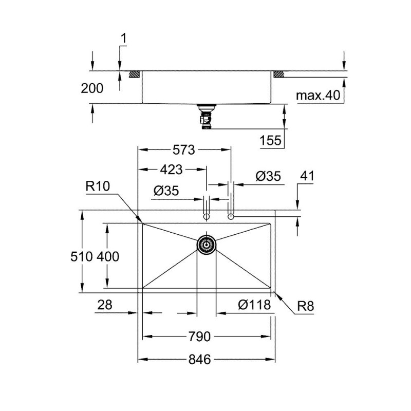 Grohe Мийка для кухні 846 x 510 мм, 1 чаша, матова, в рівень зі стільницею (31584SD1)