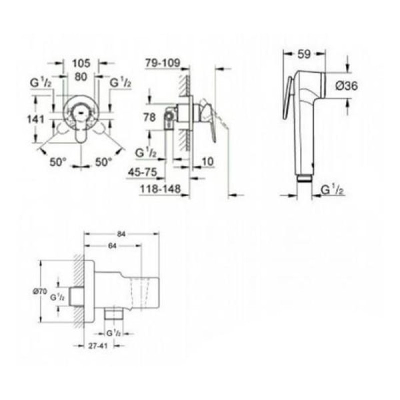 Набір гігієнічного душа зі змішувачем прихованого монтажу.