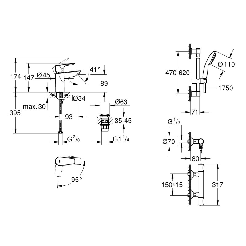 - підходить для прикручування (включає шурупи та дюбелі) або приклеювання (клей GROHE QuickGlue S 41247000 продається окремо - потрібно 2 шт.)