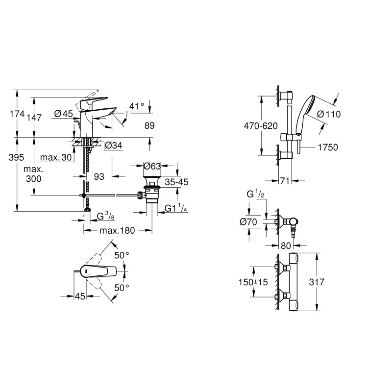 підходить для прикручування (включає шурупи та дюбелі) або приклеювання (клей GROHE QuickGlue S 41247000 продається окремо - потрібно 2 шт.)