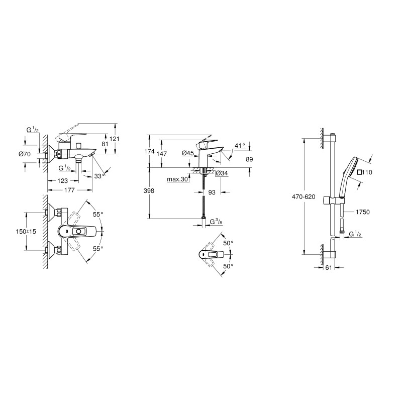 GROHE FastFixation (регульований верхній кронштейн для наявних отворів)