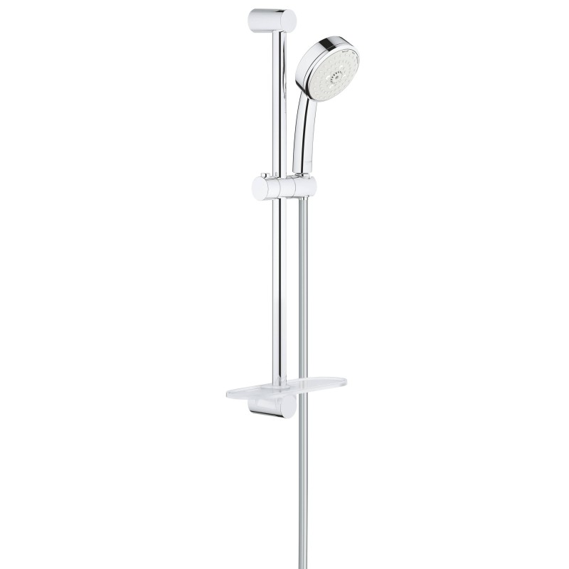 Душовий гарнітур GROHE TEMPESTA COSMOPOLITAN ідеально підходить для ванних кімнат з сучасними інтер'єрами і оригінальними архітектурними рішеннями, а поличка дозволить мати необхідні засоби гігієни завжди під рукою.