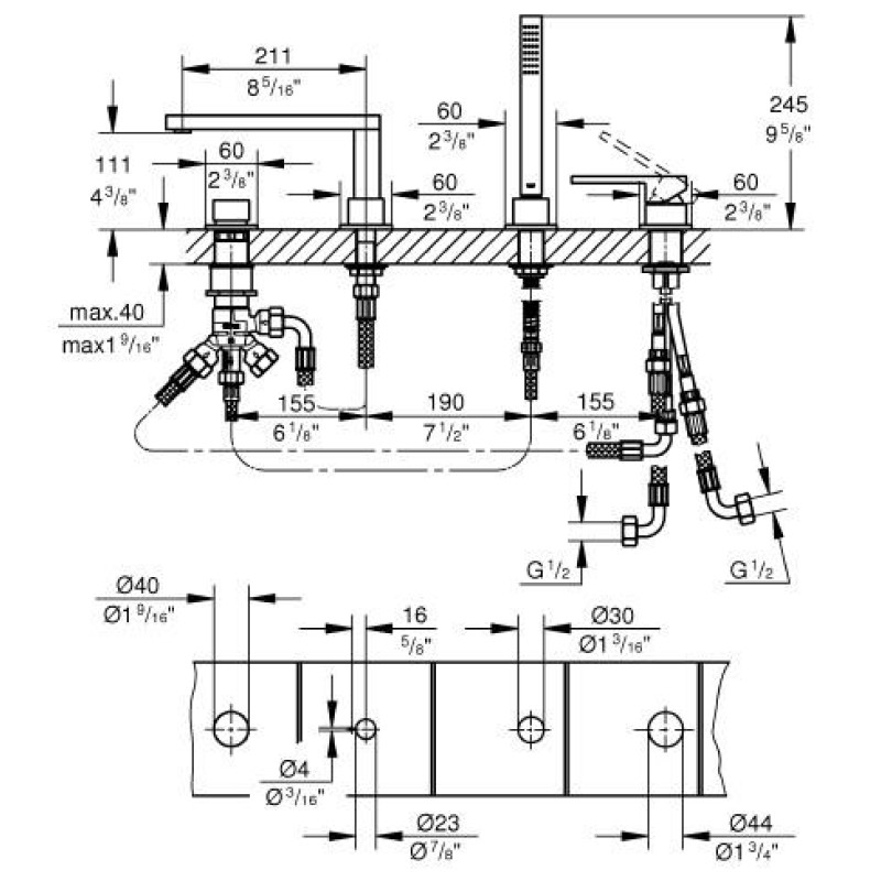 | Тип монтажу змішувача | На бортик |