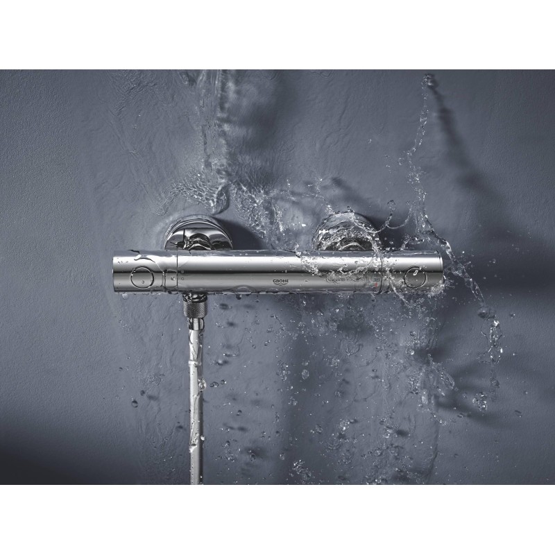 Термостатичний змішувач для душу GROHE QuickFix Precision Get поєднує стиль, безпеку та комфорт завдяки інноваційним ручкам MetalGrip. Скористайтеся перевагами термостатичного душу за допомогою цього настінного термостатичного змішувача, що забезпечує ще більшу зручність. Технологія GROHE TurboStat дозволяє насолоджуватися водою, яка завжди має ідеальну температуру без коливань. Безпека також входить у стандартну комплектацію, що робить його ідеальним вибором для сімейних ванних кімнат. Діти не можуть підняти температуру занадто високо завдяки кнопці блокування GROHE SafeStop, встановленій на 38°C, і обмежувачу температури GROHE SafeStop Plus, який можна встановити на додаткову межу 43°C. Термостатом легко керувати завдяки рукояткам GROHE MetalGrip із прихованим обідком Ergorim на задній частині ручки, що чудово підходить для захоплення навіть мокрими або мильними руками. Змішувач має функцію економії води без зусиль GROHE WaterSaving, що зменшує витрати води. Потрібна повна потужність? Просто натисніть кнопку EcoButton, щоб звільнити рукоятку. Цей шикарний змішувач оздоблений міцною поверхнею GROHE StarLight для довготривалого блискучого вигляду.