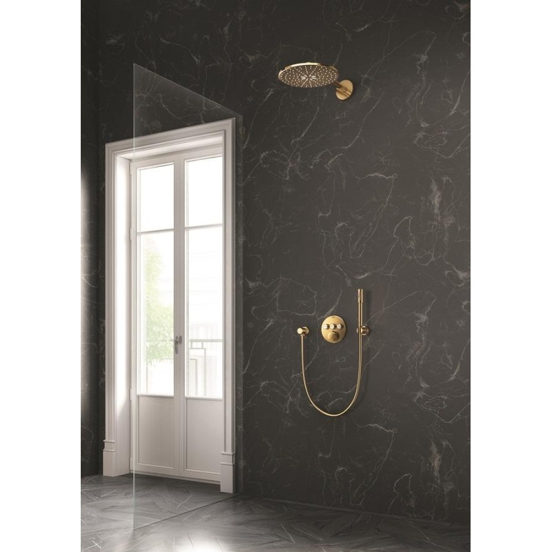 Завдяки технології GROHE DreamSpray потік із усіх душових форсунок буде ідеально однаковий. Технологія SpeedClean дозволяє видаляти вапняний наліт з форсунок за допомогою простої серветки, а шикарне та міцне оздоблення GROHE Long-Life Shine збереже свій бездоганний зовнішній вигляд за рахунок фізичного осадження з парової фази (PVD) для додаткового захисту від подряпин.