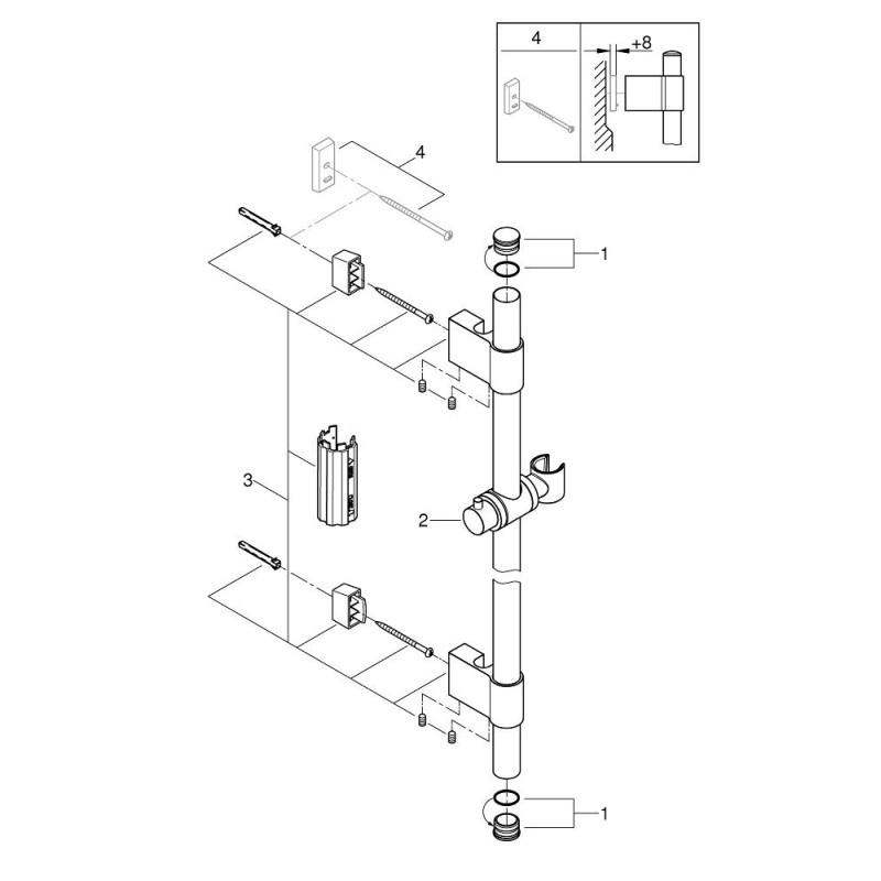 GROHE QuickFix (регулюєма відстань між настінними кріпленнями штанги дозволяє використовувати для монтажу вже наявні отвори в стіні)