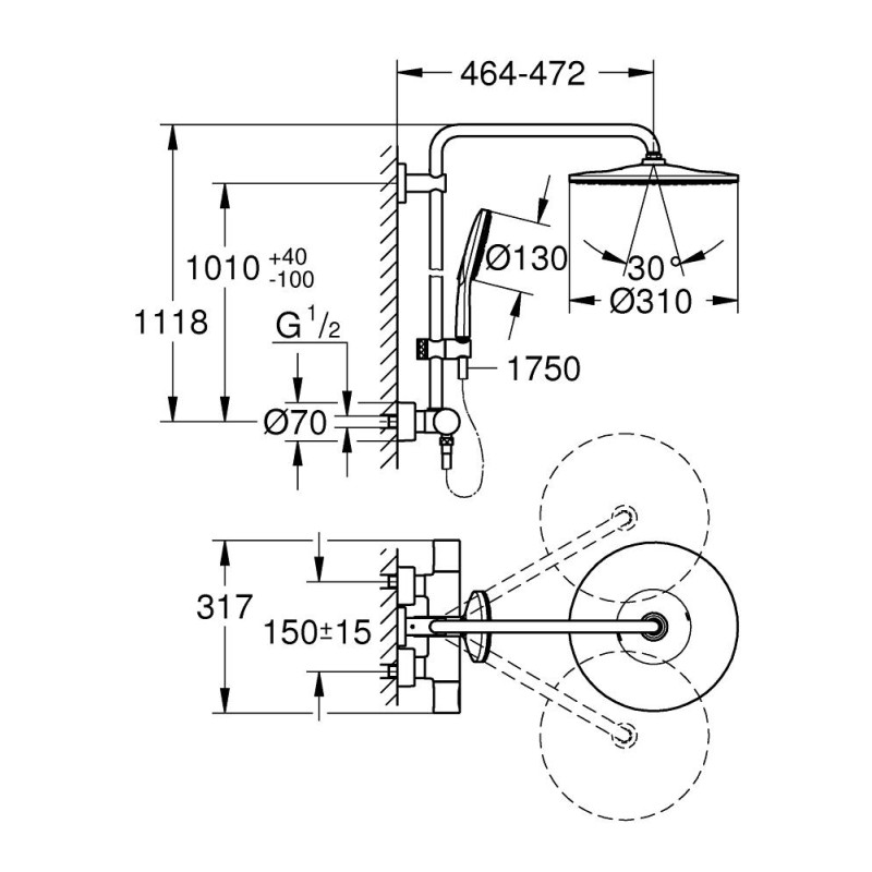 Диаметр верхнього душу 310 мм