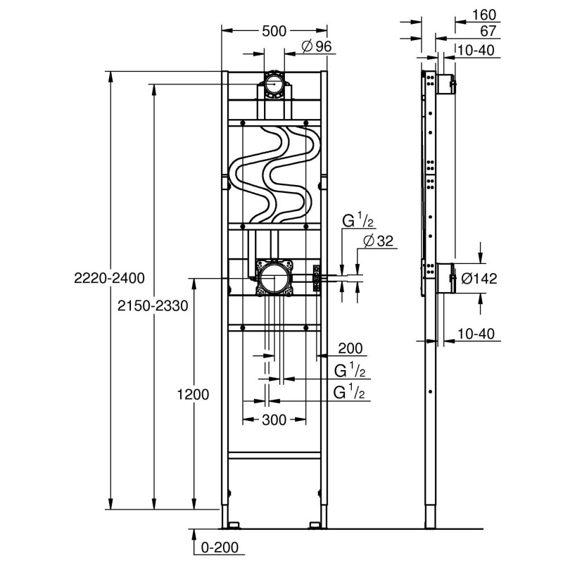 мін. монтажна глибина (від чорнової стіни до фасаду рами) 67 мм