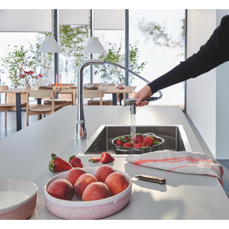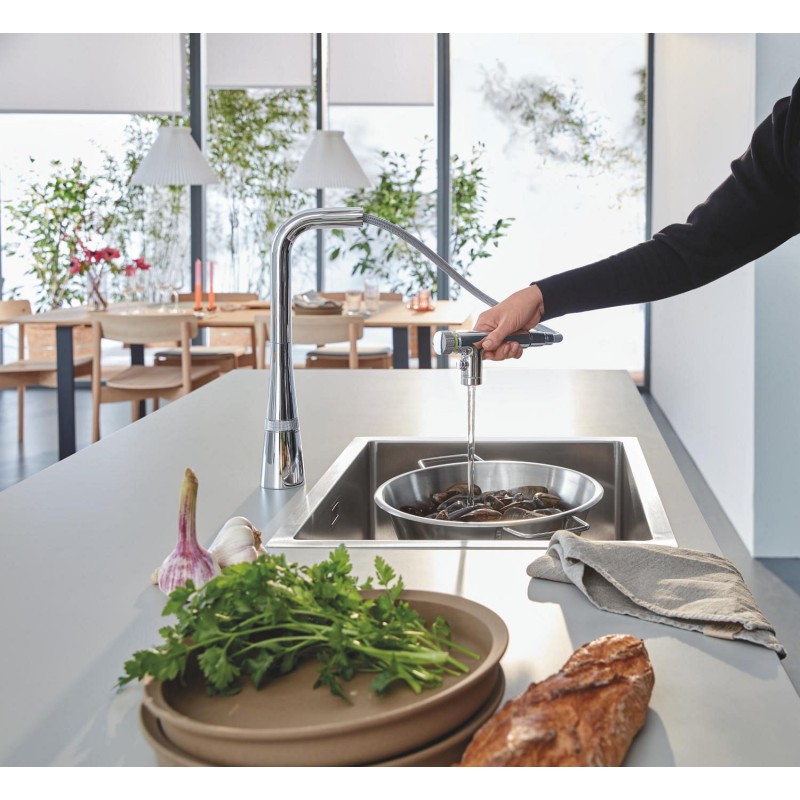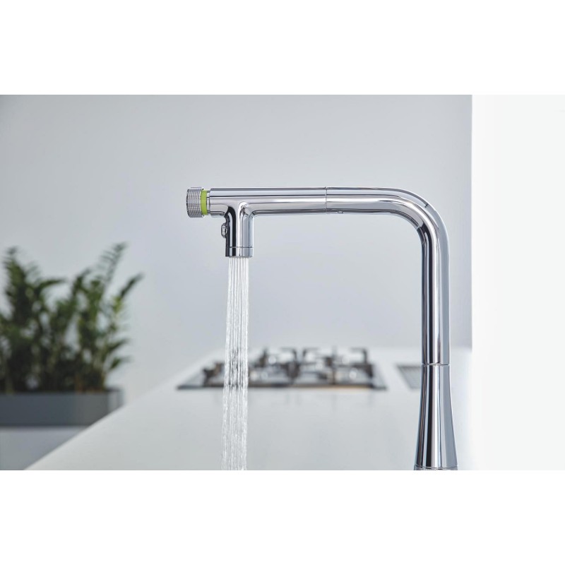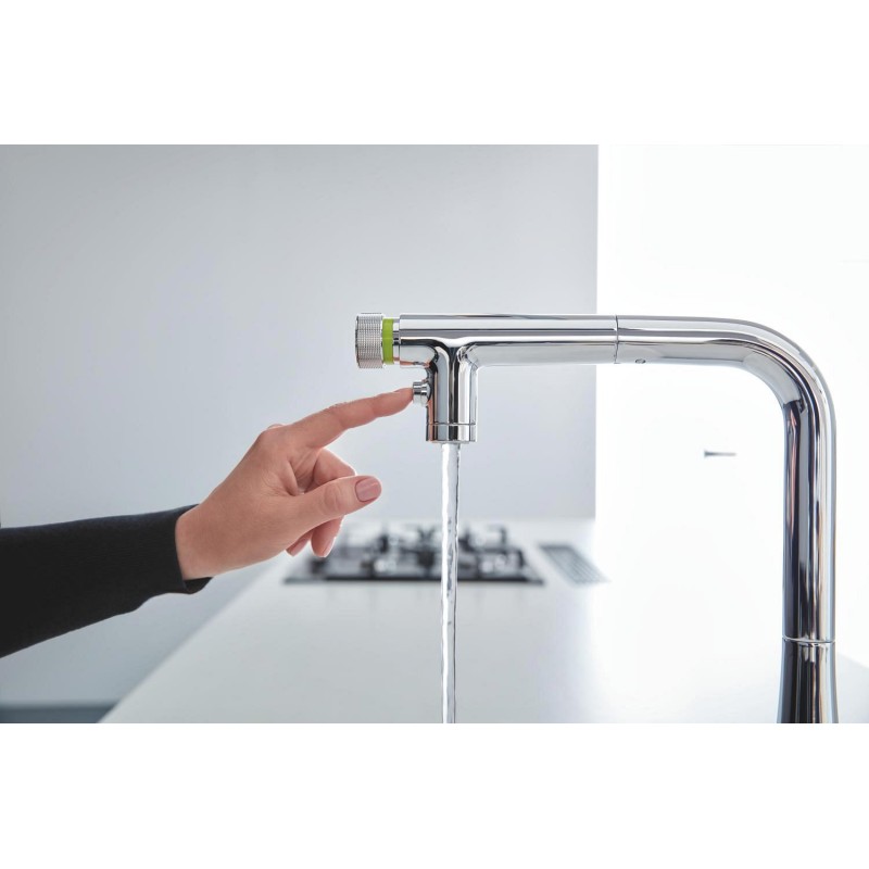 GROHE SmartControl натискна кнопка для увімкнення/вимкнення, обертова рукоятка для регулювання об'єму водного потоку від економного еко-режиму до Full Flow