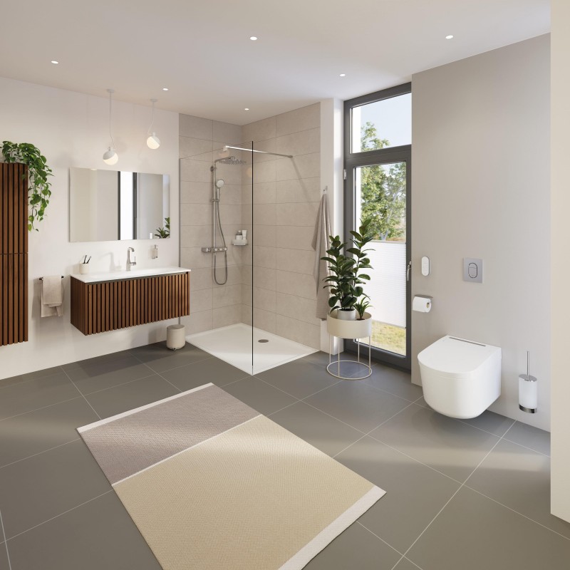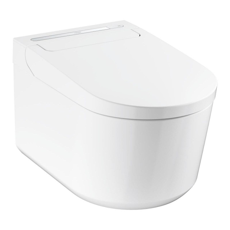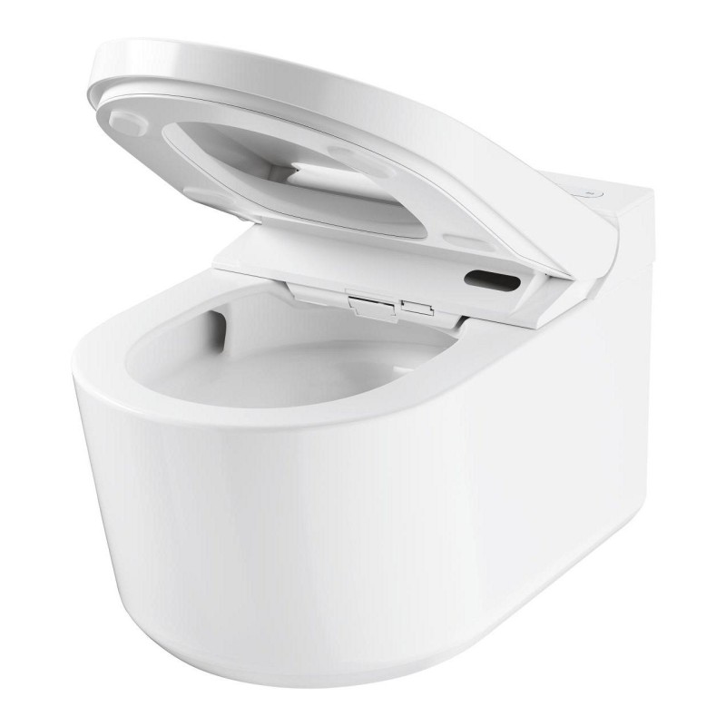 Завдяки інноваційним технологіям ця підвісна модель поєднує в собі функції унітазу та зручність біде. Пропонуючи дві окремі самоочисні розпилювальні головки (в т.ч. Lady Spray), які можна регулювати за положенням, інтенсивністю і температурою, з функціями коливального і масажного розпилення, а також функцією сушіння теплим повітрям, GROHE Sensia Pro піднімає вас на новий рівень чистоти.
