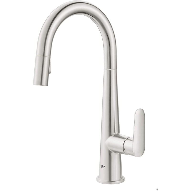 Витончений, елегантний і відверто мінімалістичний змішувач з висувною лійкою GROHE Veletto в покритті суперсталь стане ефектним елементом будь-якої кухні, оформленої в сучасному або перехідному стилі.