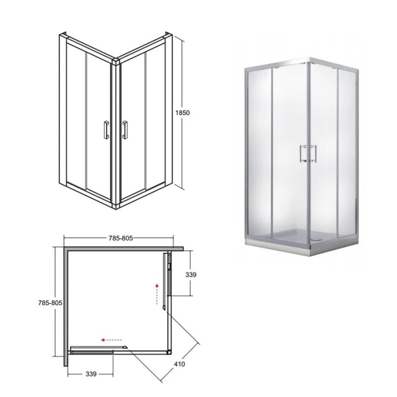 Кабіна квадратна MODERN 80x80x185: скло grigio, профіль хромований
