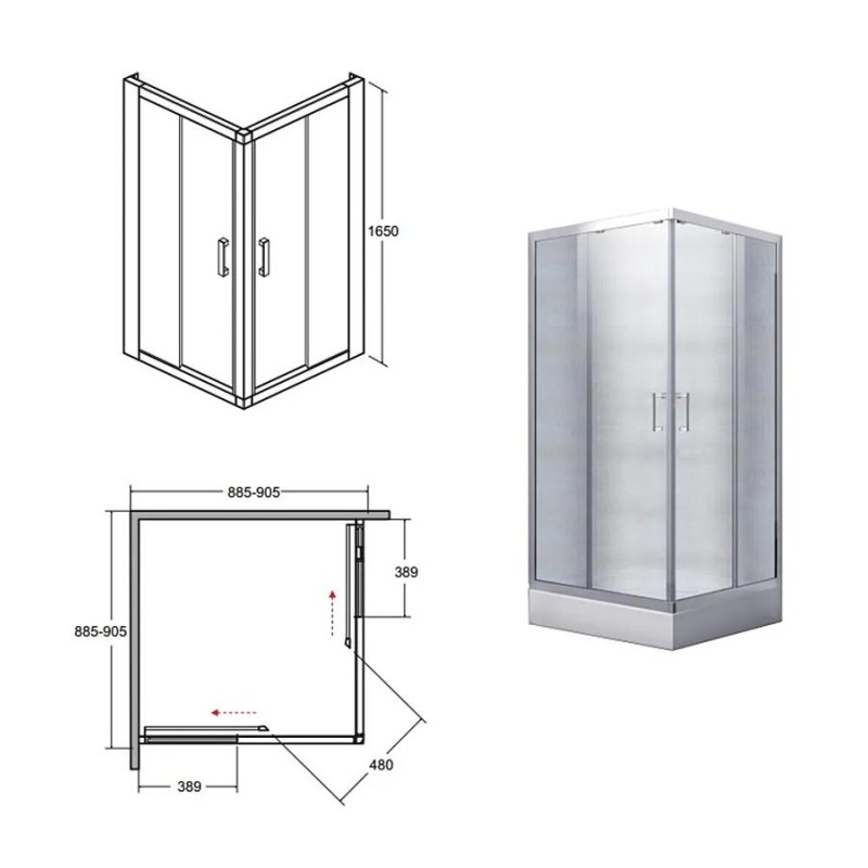 Гартоване скло товщиною 6 мм, матове. Ширина входу: 48 см. Піддон докупляється окремо. Підходять піддони Igor, Ares від BESCO. Двері - розсувні.