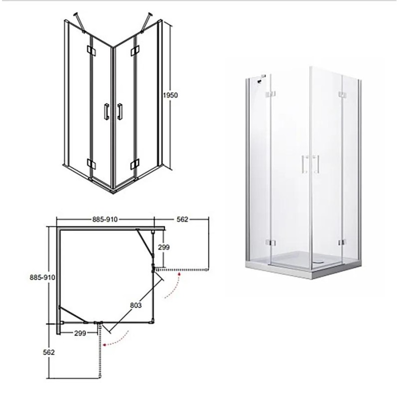 Гартоване скло 8 мм. Регулювання та вирівнювання нерівностей стіни: 88.5-91 см. Магнітний ущільнювач дверей. З покриттям Besco ProClean - захисний шар, нанесений на поверхню скла, завдяки якому прозоре скло залишається прозорим без ретельного прибирання. 2 дверей, орні (розпашні). Ширина входу 80.3 см.