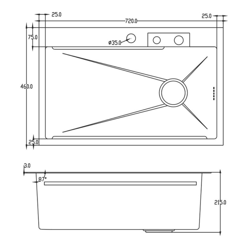 | Діаметр зливного отвору | 3 |