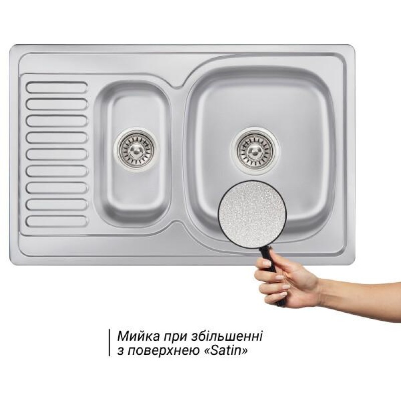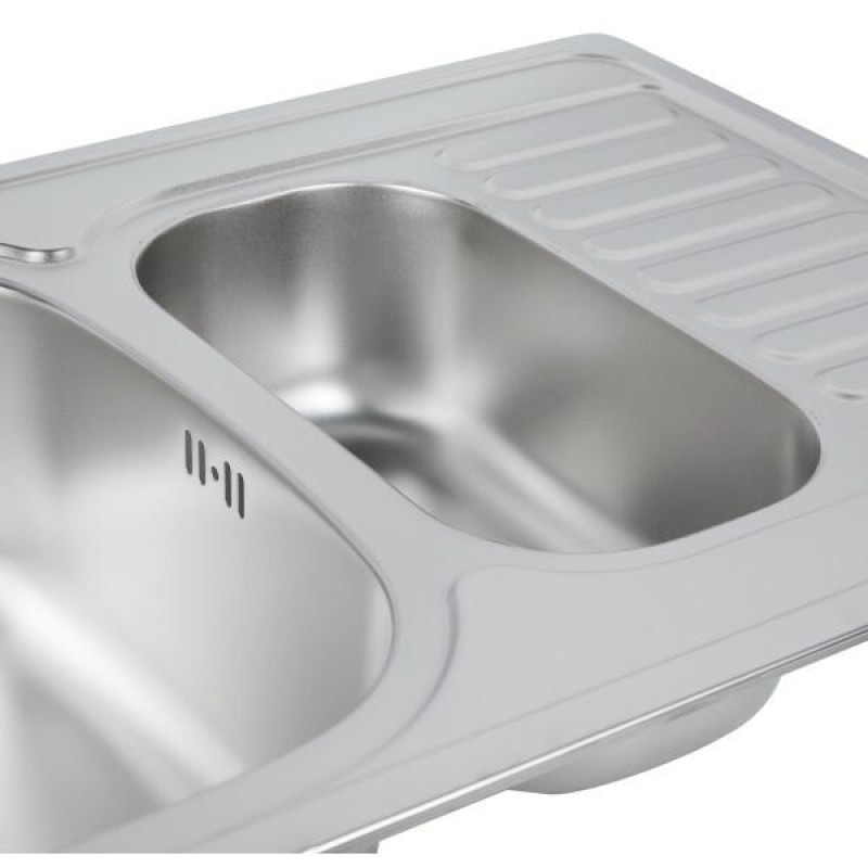 Мийка Wezer 7850(08) Satin зроблена з нержавіючої сталі. Її унікальна особливість – це наявність двох чаш. Одну з чаш можна використовувати для розморожування продуктів, миття негабаритного посуду і для споліскування овочів і фруктів.