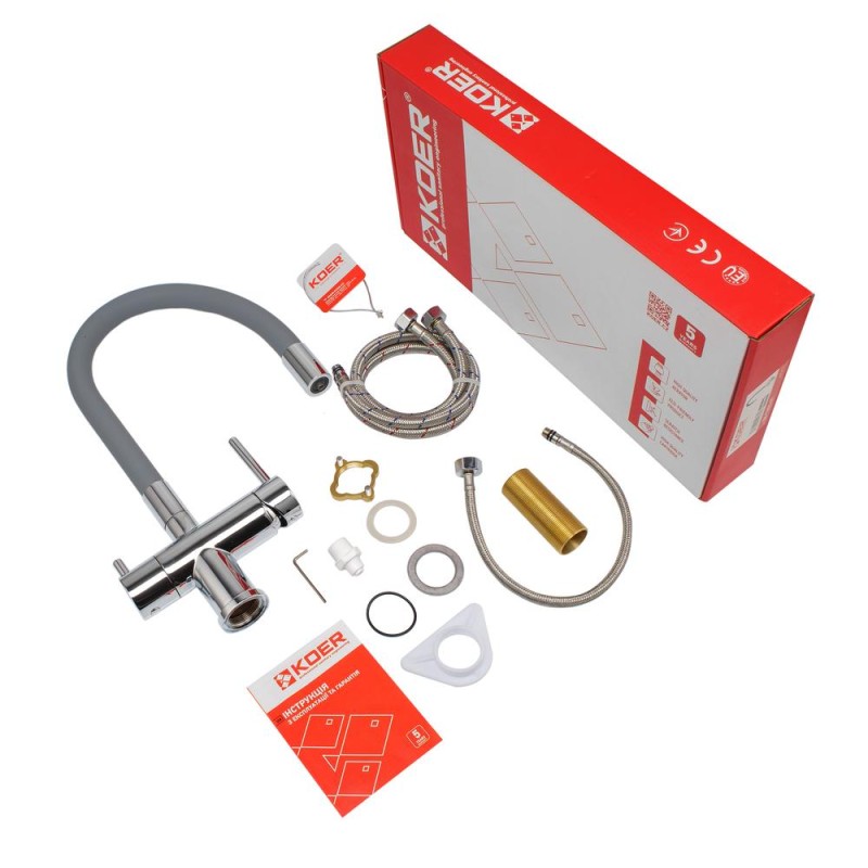 Кухонний змішувач із силік. виливом і вих. для питної води Koer KB-72002-01 (KR3383)