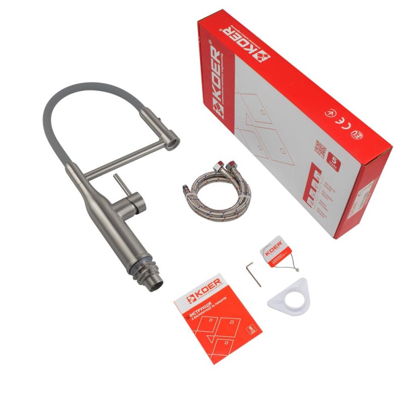 Кухонний змішувач з силіконовим виливом KOER KI-70005-02 (нерж. сталь) (KR3388)