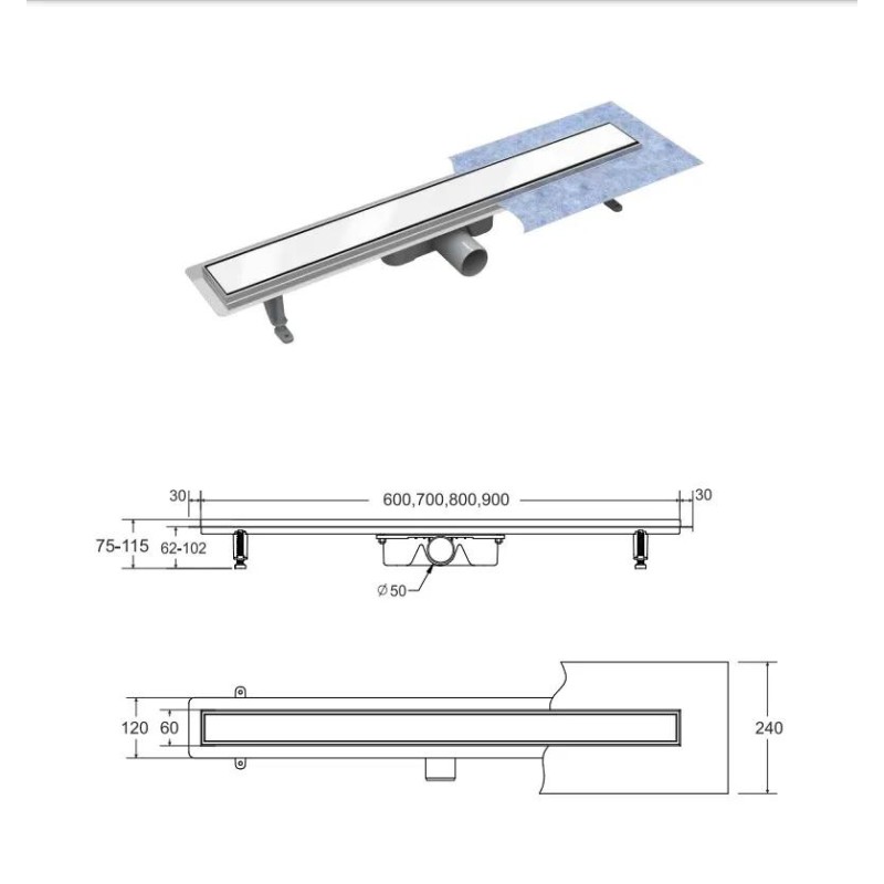 Лінійний душовий трап Virgo White 90