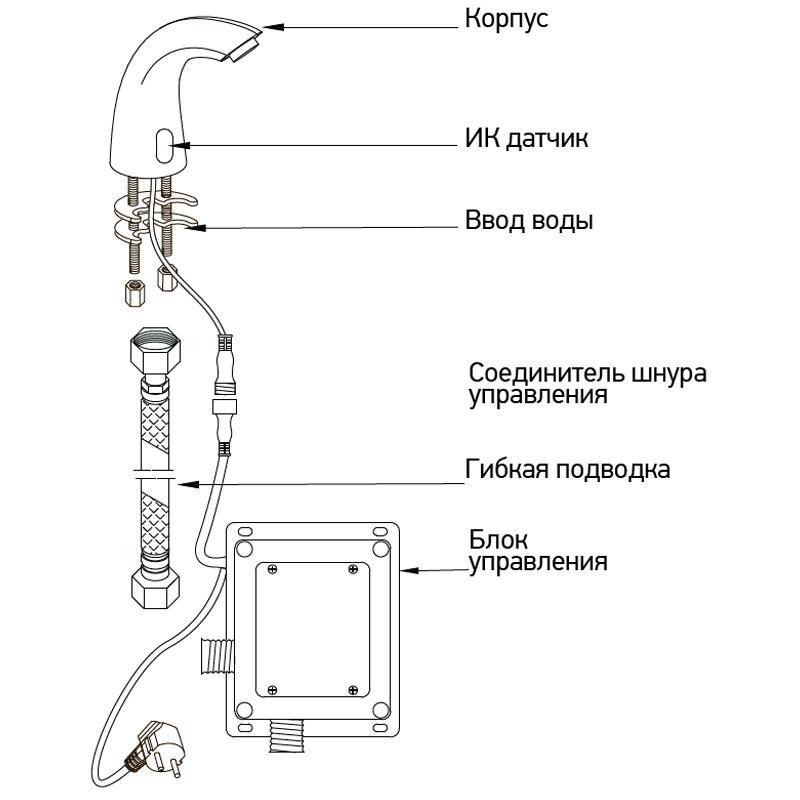 Комплектація Корпус в зборі з кабелем 65 см, кріпильна гайка, 1 гнучка підводка 50 см (М10 - 1/2), блок управління з кабелем 80 см, комплектШвидкий монтаж (шурупи і дюбелі) для кріплення блоку управління, інструкція з експлуатації з гарантійним талоном