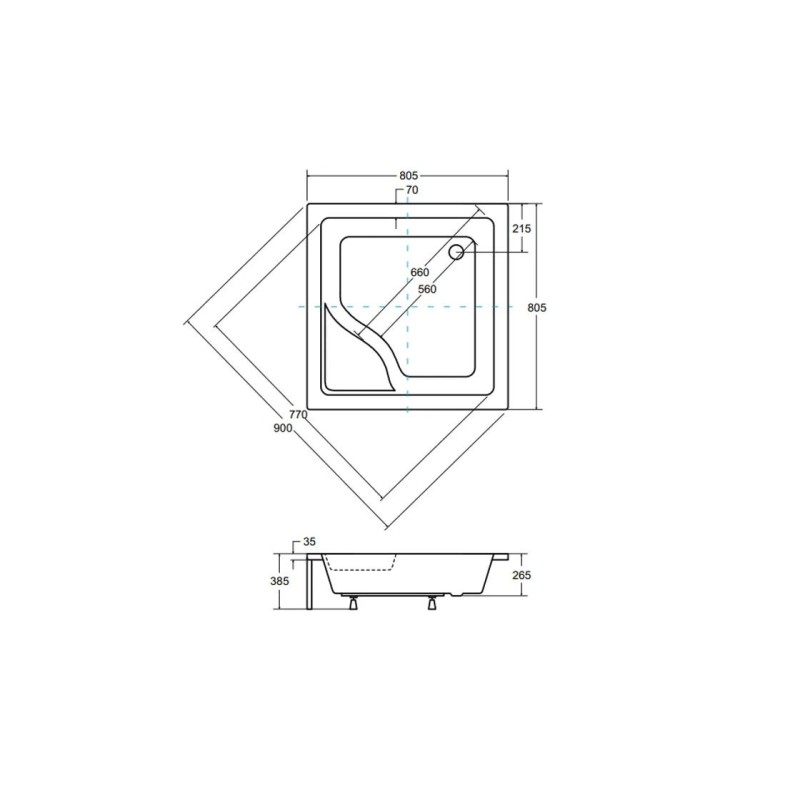 Злив ø 50 мм, глибина піддона 24 см, висота бортів 38,5