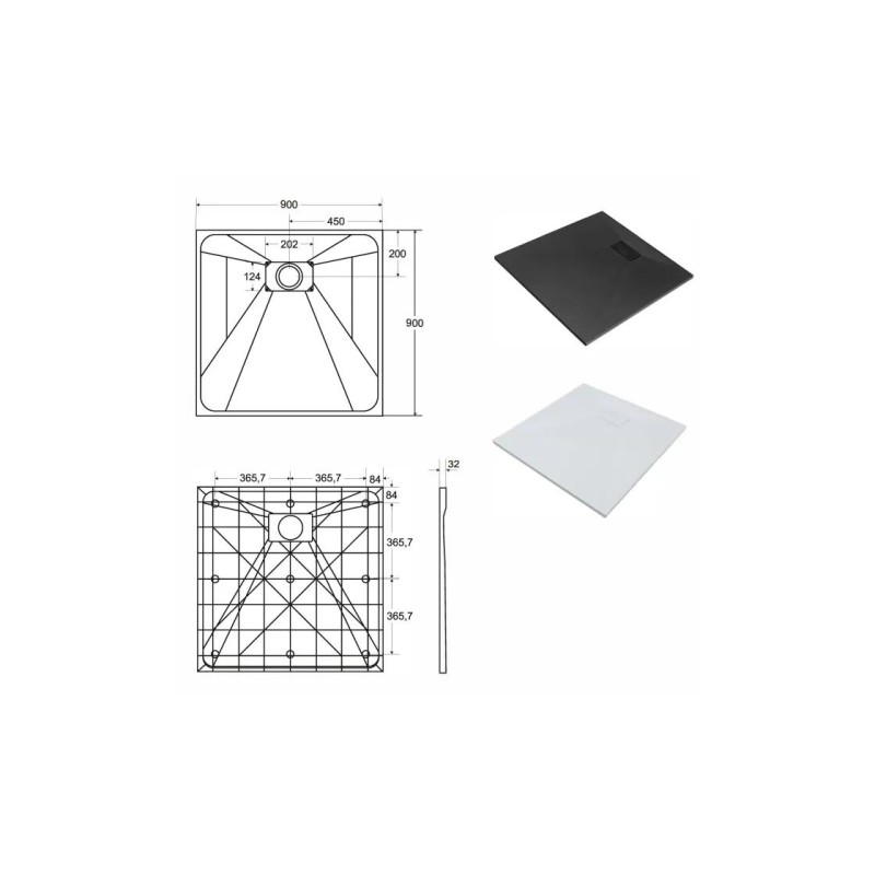 Піддон в комплекті з накладною решіткою в колір піддона і з сифоном з верхньою очисткою. Діаметр зливу 90 мм.