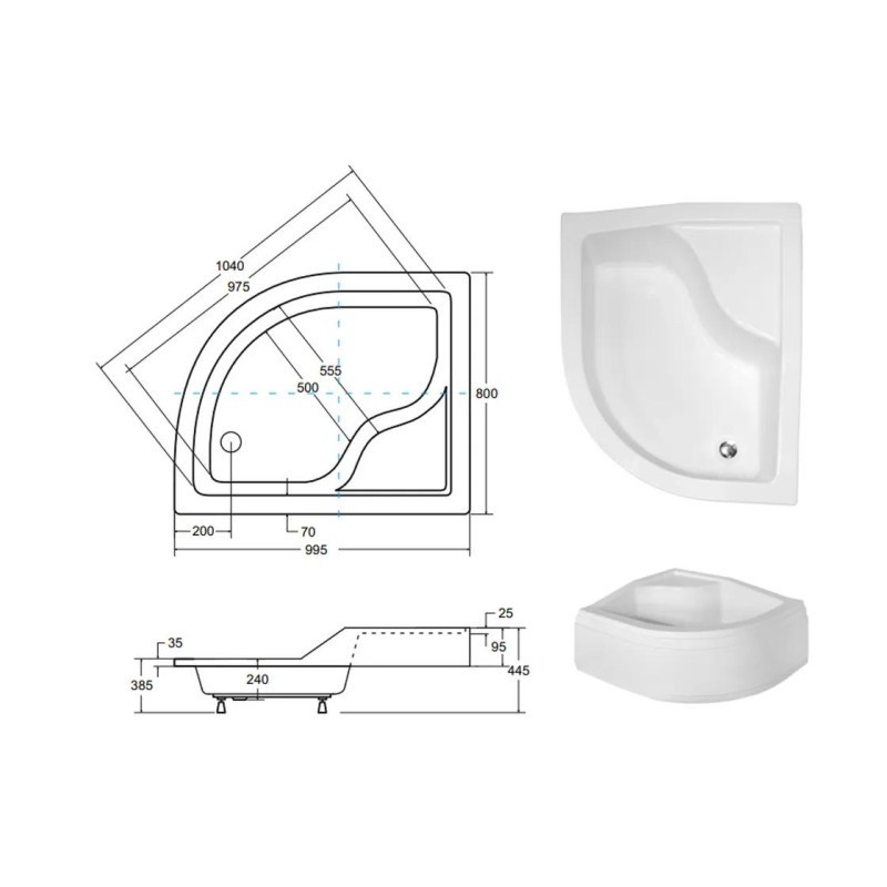 Піддон півкруглий MAXI 100x80х24/38,5 L лівий + ноги