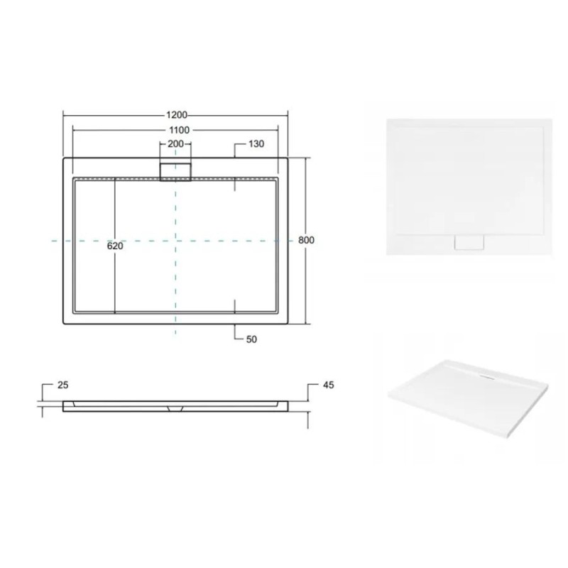 Піддон прямокутний AXIM UltraSlim 120x80 + сифон