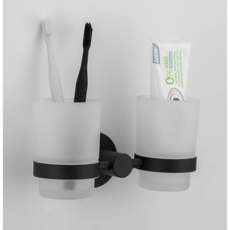 Подвійний стакан для щіток Frap F30208, нержавіюча сталь, чорний