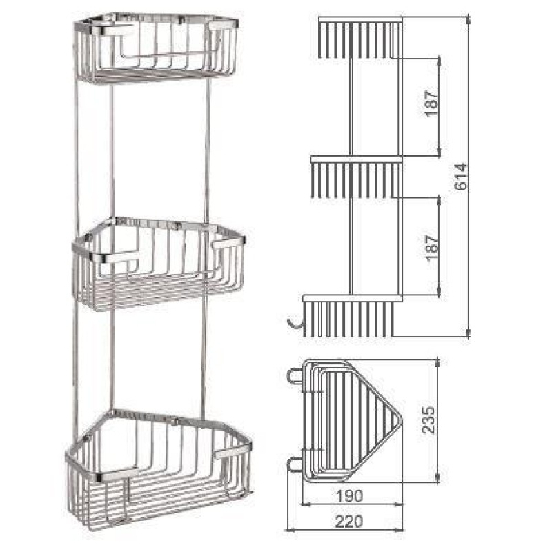 Полиця кутова Frap F351-2, 3-х ярусна, 240х570 мм, нержавіюча сталь, хром