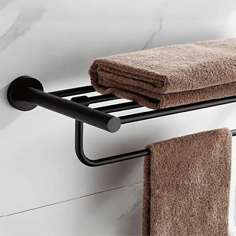 Полиця з тримачем для рушників Frap F30224, нержавіюча сталь, 600 мм, чорний