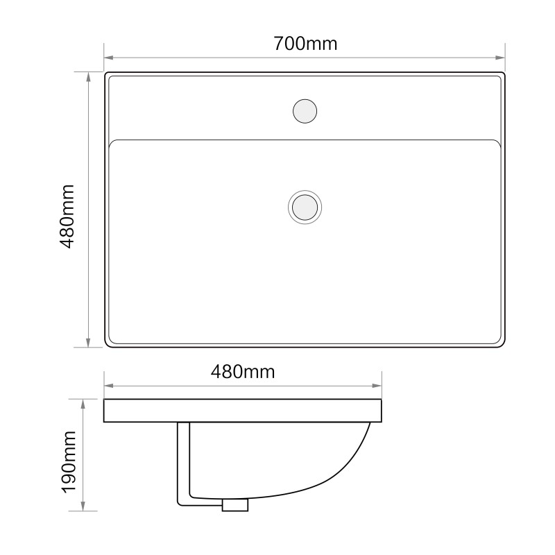 Раковина врізна меблева MIXXUS PREMIUM модель STYLE-1502 має розмір 190x700x480 мм. Раковина врізна на стільницю, сумісна з тумбою, виконана з санфарфору білого кольору прямокутної форми. Дно чаші трохи увігнуте. На раковині передбачений отвір під змішувач, а також отвір для переливу. Раковина монтується в стільницю, в якій відведене для них місце, що виглядає естетично, заощаджує місце і приховує всі підводи. Раковина має на 1-2 мм виступати за краї передньої та бічних стінок меблевої тумби для запобігання пошкодшення від вологи її стінок. Це - класичне рішення в дизайні ванної кімнати.