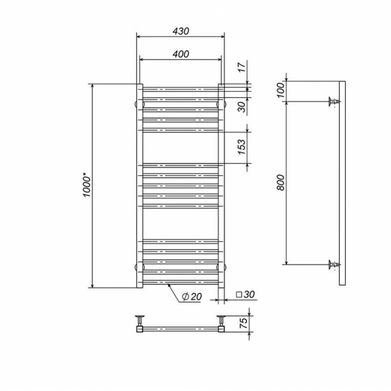 Рушникосушарка електрична Deffi Lima 400х1000 правий, 154 Вт, хром