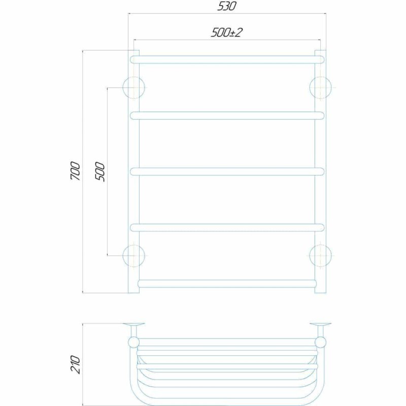Рушникосушарка електрична Deffi Стандарт з полицею 500x700 лівий, 100 Вт