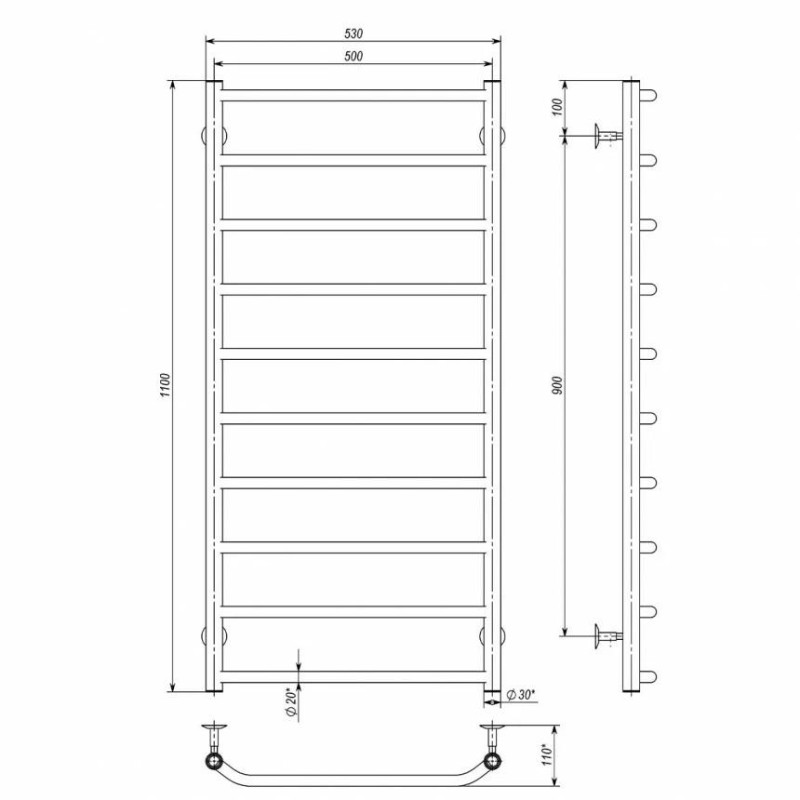 Характеристика рушникосушарк електричн Deffi Трапеція 500x1000: