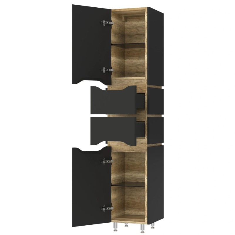 Цей високий пенал — раціональний вибір для максимального використання наявного простору, він втілює ідеальне поєднання великої місткості та витонченої, компактної форми. Його продумана до дрібниць внутрішня структура дозволяє ефективно організувати зберігання значної кількості предметів, від підлоги до самої стелі, зберігаючи при цьому візуальну цілісність та елегантність інтер’єру. Він виступає як потужний організаційний центр та водночас як стильний вертикальний акцент, що надає приміщенню завершеності, характеру та відчуття висоти.