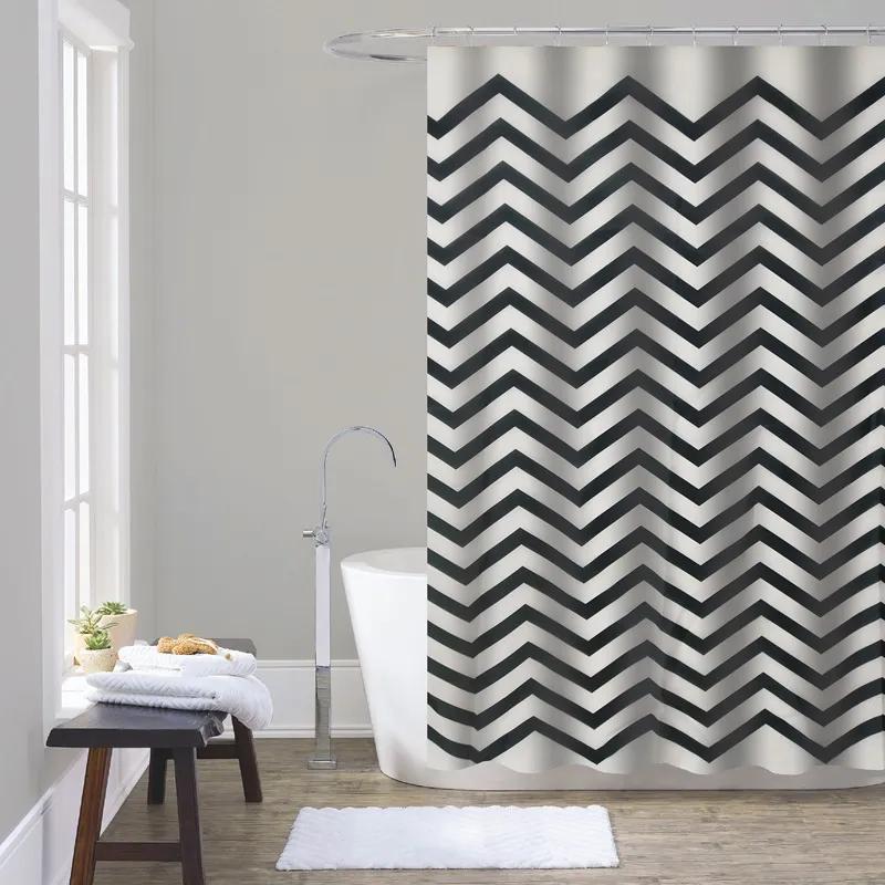 Штора для ванної з поліестеру Zerix SCT-007-180x200 (Візерунок чорно-білий) (ZX4988)