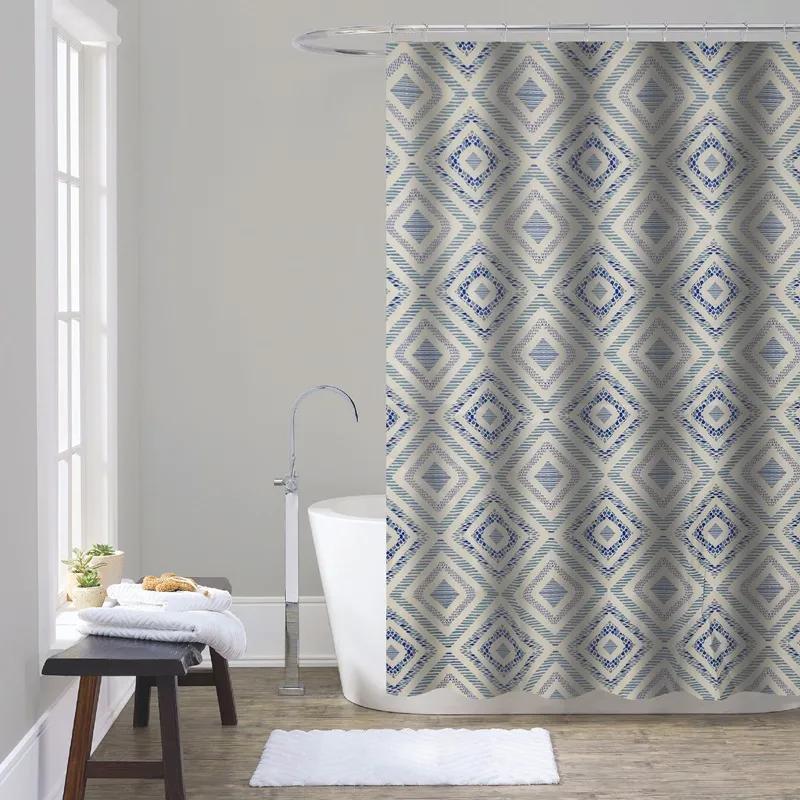Штора для ванної з поліестеру Zerix SCT-011-180x180 (Візерунок Синій ромб на сірому) (ZX4982)