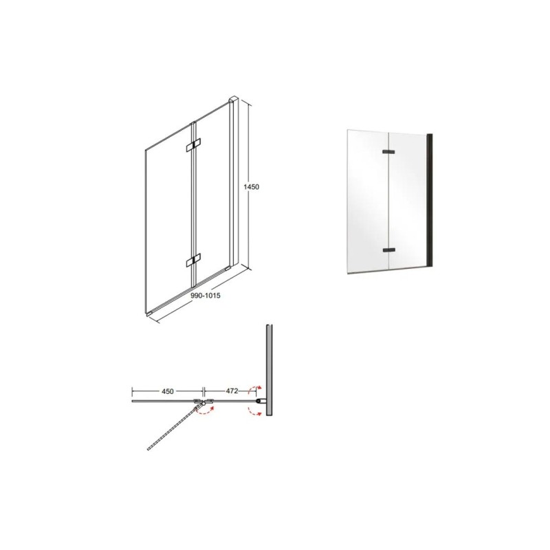 Шторка для ванни BESCO Lumix-2S 100x145 профіль чорний мат
