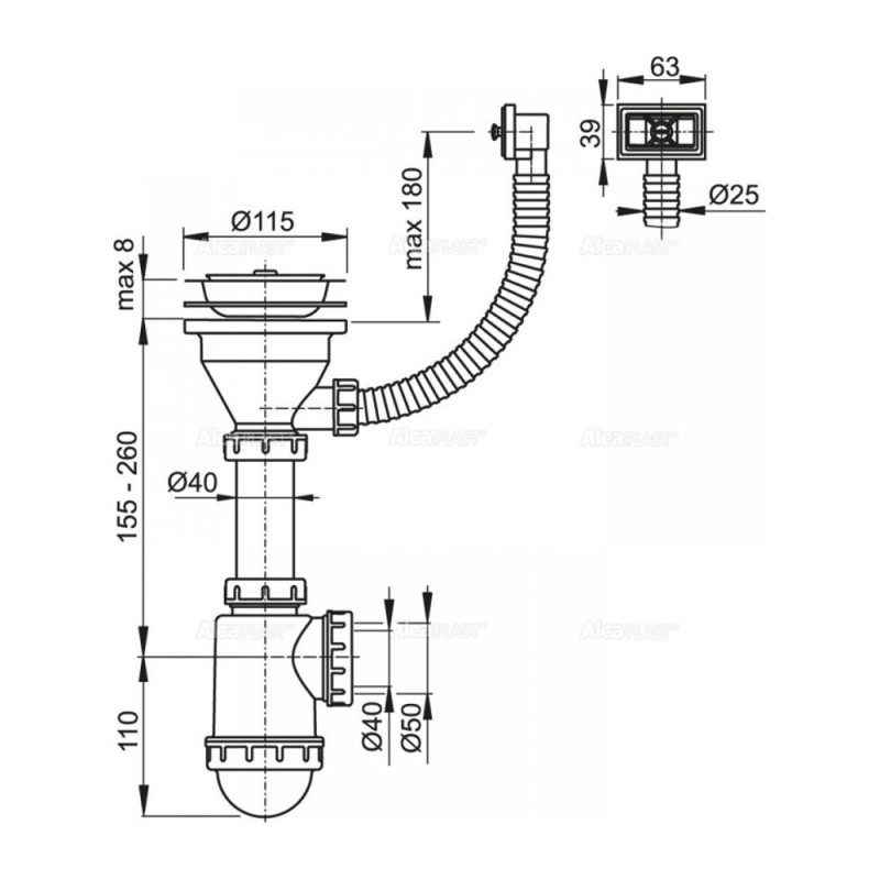 Оберіть сифон AlcaPlast — надійне рішення для вашої кухні, яке поєднує зручність, якість і функціональність!