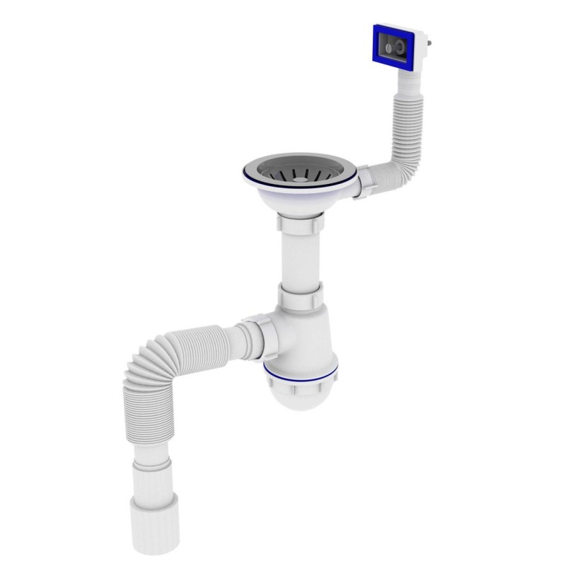Сифон для кухонної мийки Kronoplast 40/50 з гнучким прямокутним переливом (SM27010343)