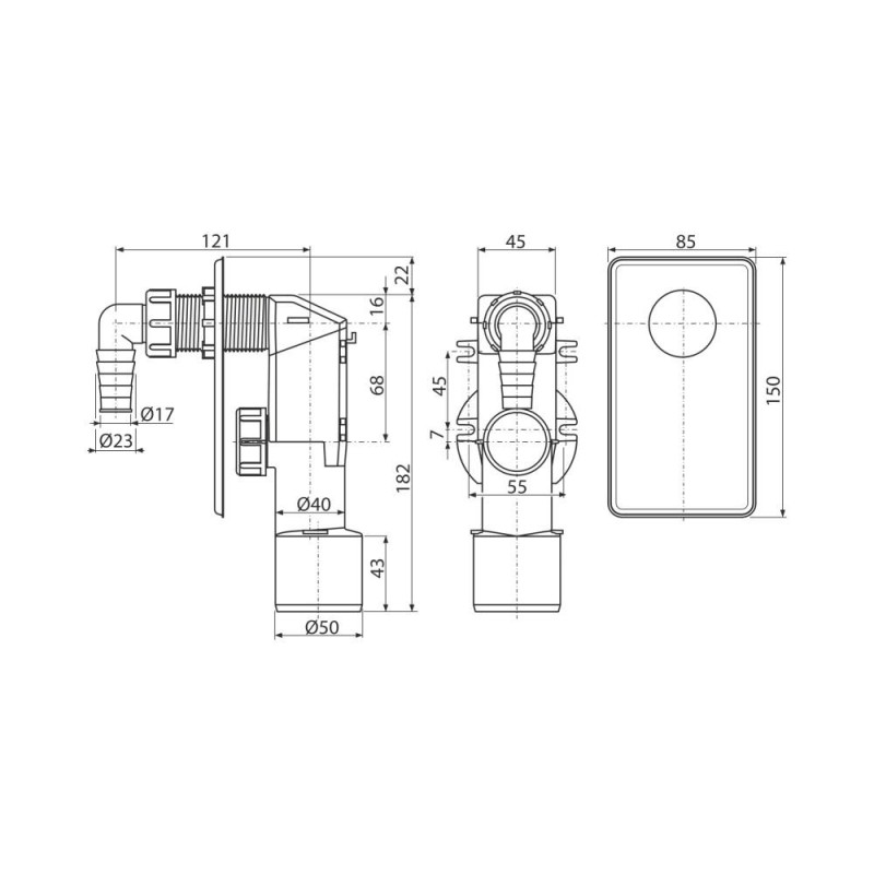 Сифон для пральної машини AlcaPlast APS3 хром під штукатурку — це компактний виріб для прихованого монтажу, що поєднує міцність і зручність обслуговування. Поліпропіленовий корпус витримує хімічні й механічні впливи, а сервісний отвір забезпечує легкий доступ для очищення.