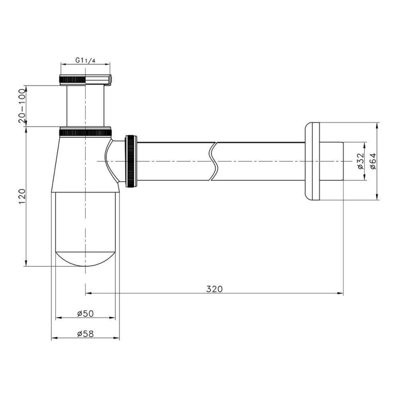 - Розмір. Сифон оснащений виходом у стіну розміром 1х1/4 дюйма.