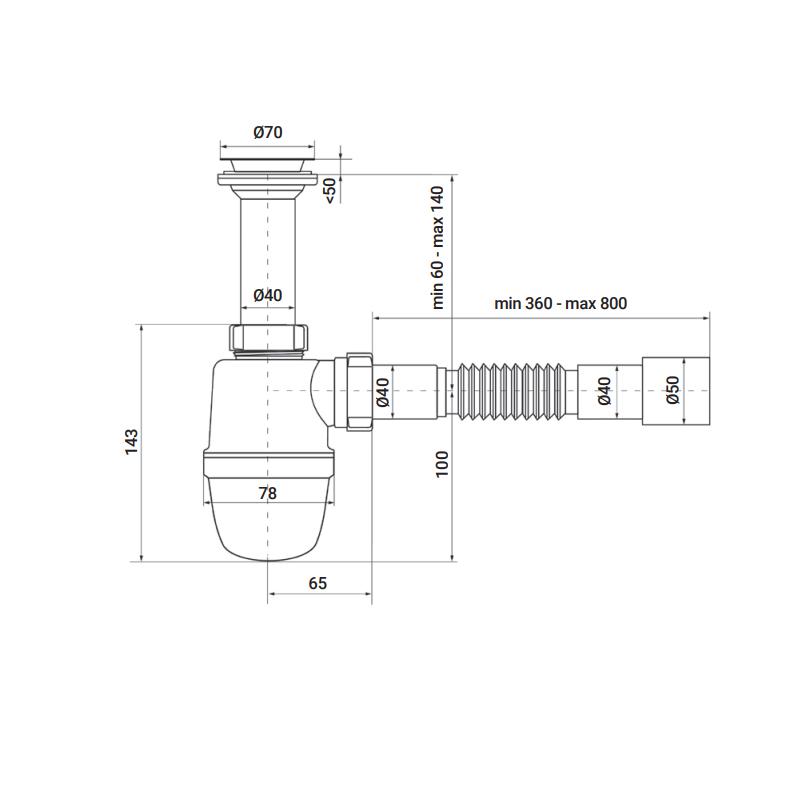| Вид виробу | Сифон для раковини колбовий |