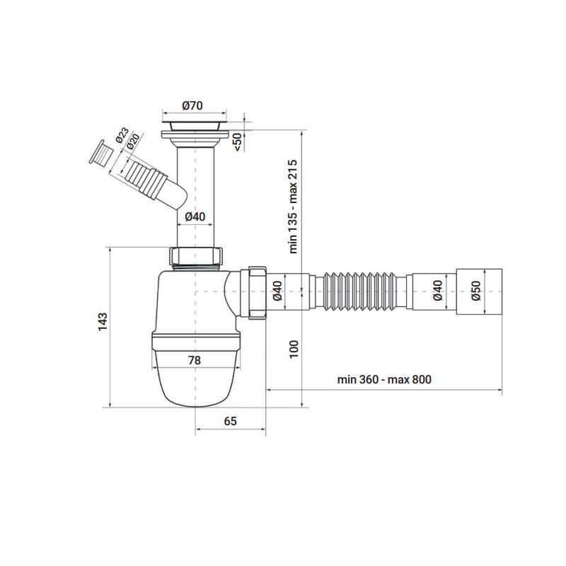 | Вид виробу | Сифон для раковини колбовий |