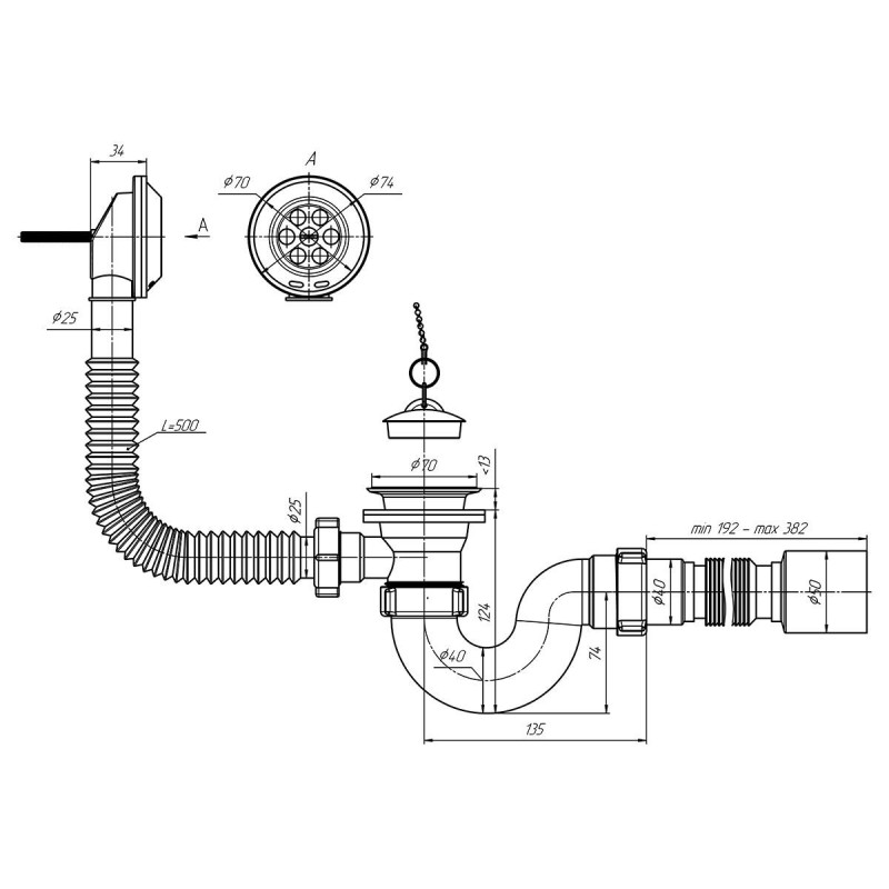 | Тип сифона | Трубний |